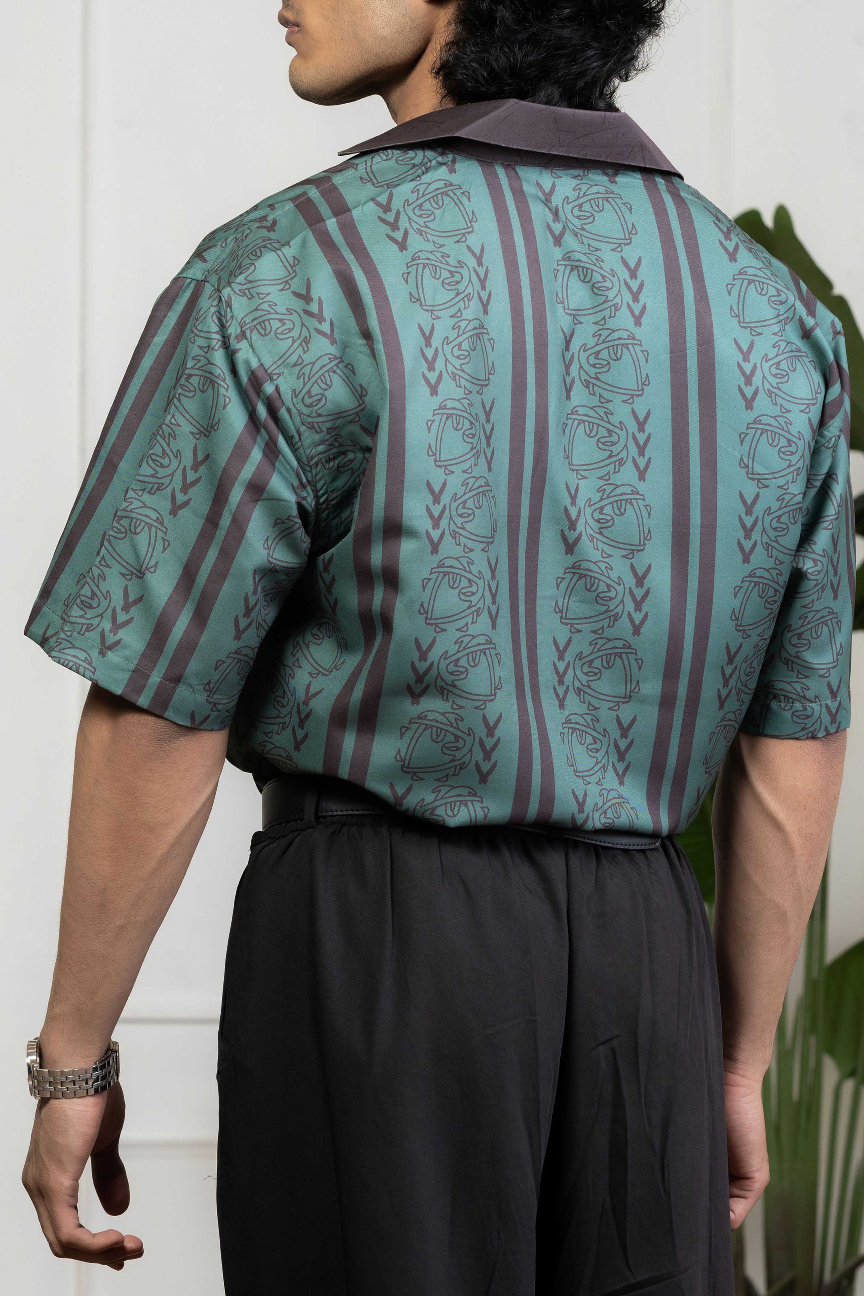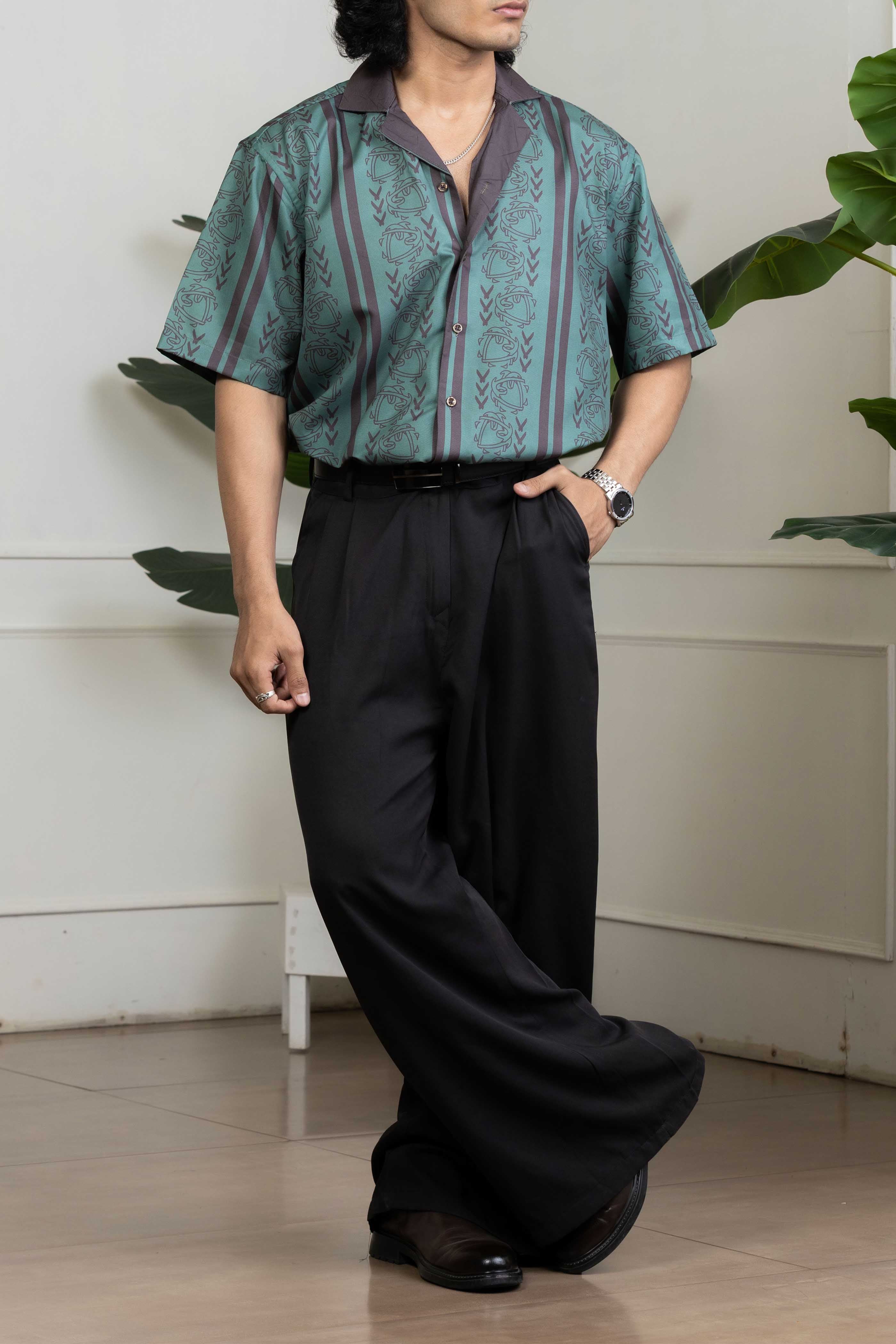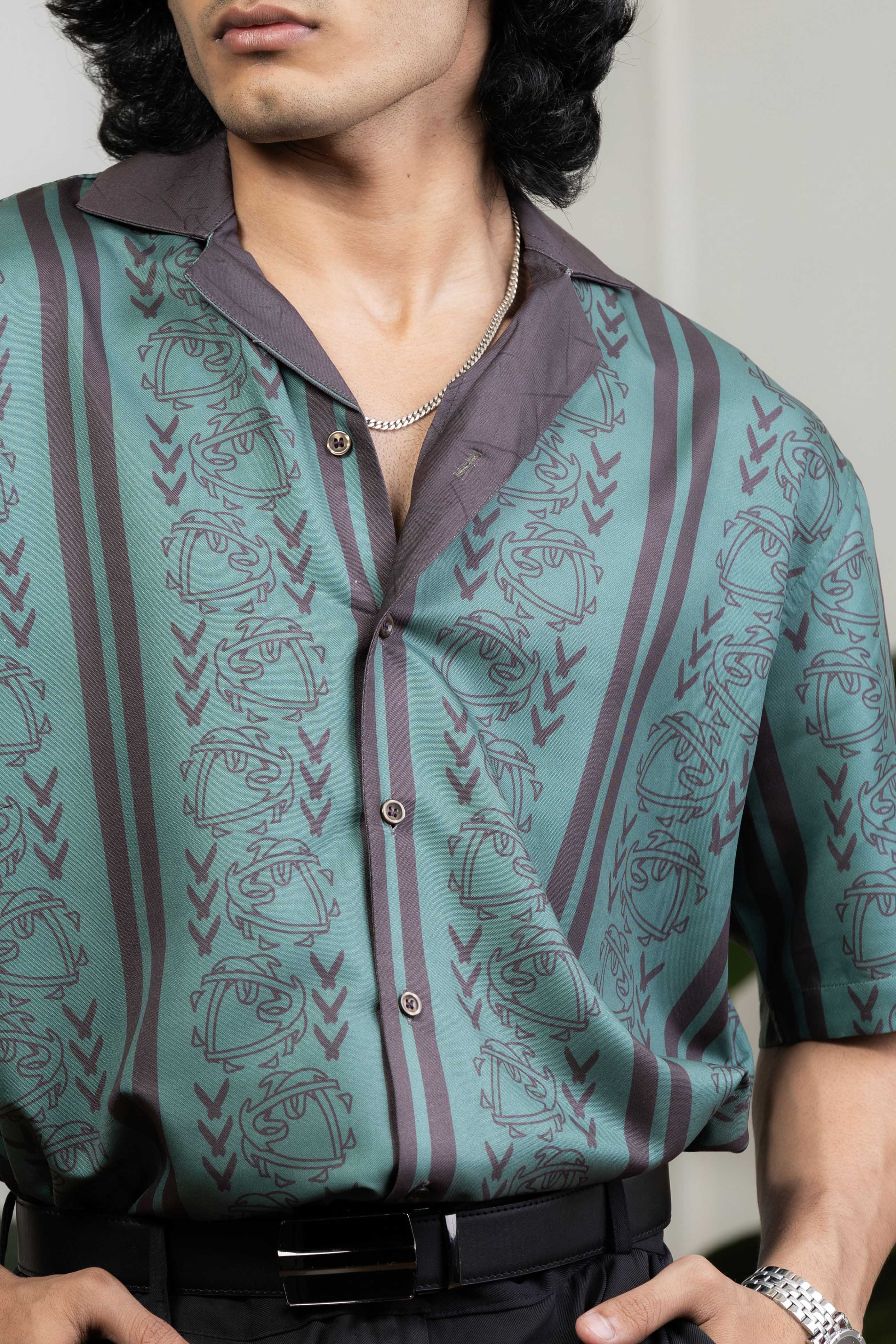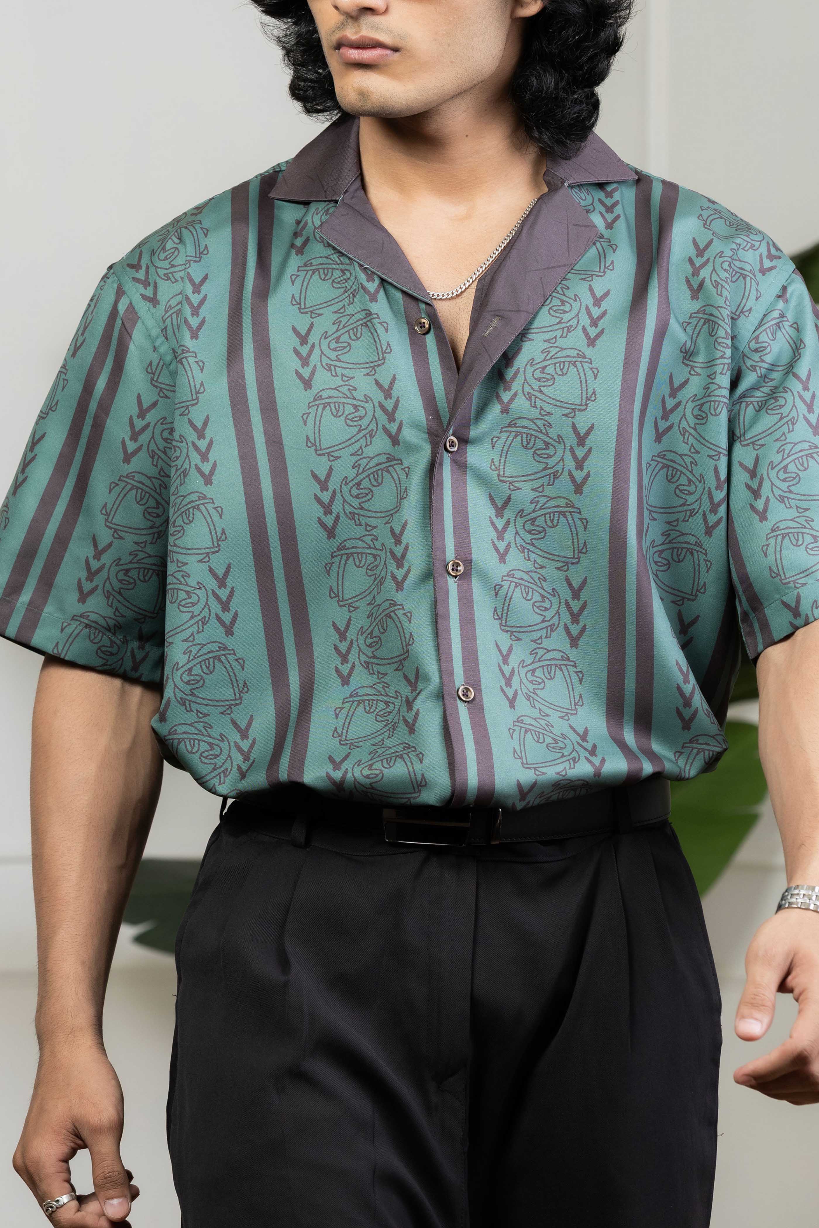 Made from ultra-soft viscose, the “Celestial Descent” shirt is where structure meets flow. Hand-drawn motifs shower down in divine rhythm, framed by precise, symmetrical borders — a harmony between abstraction and geometry. The fabric breathes with ease, light against the skin, offering all-day comfort while carrying a quiet, magnetic presence. Stunning yet understated — this shirt isn’t loud, but it speaks volumes.