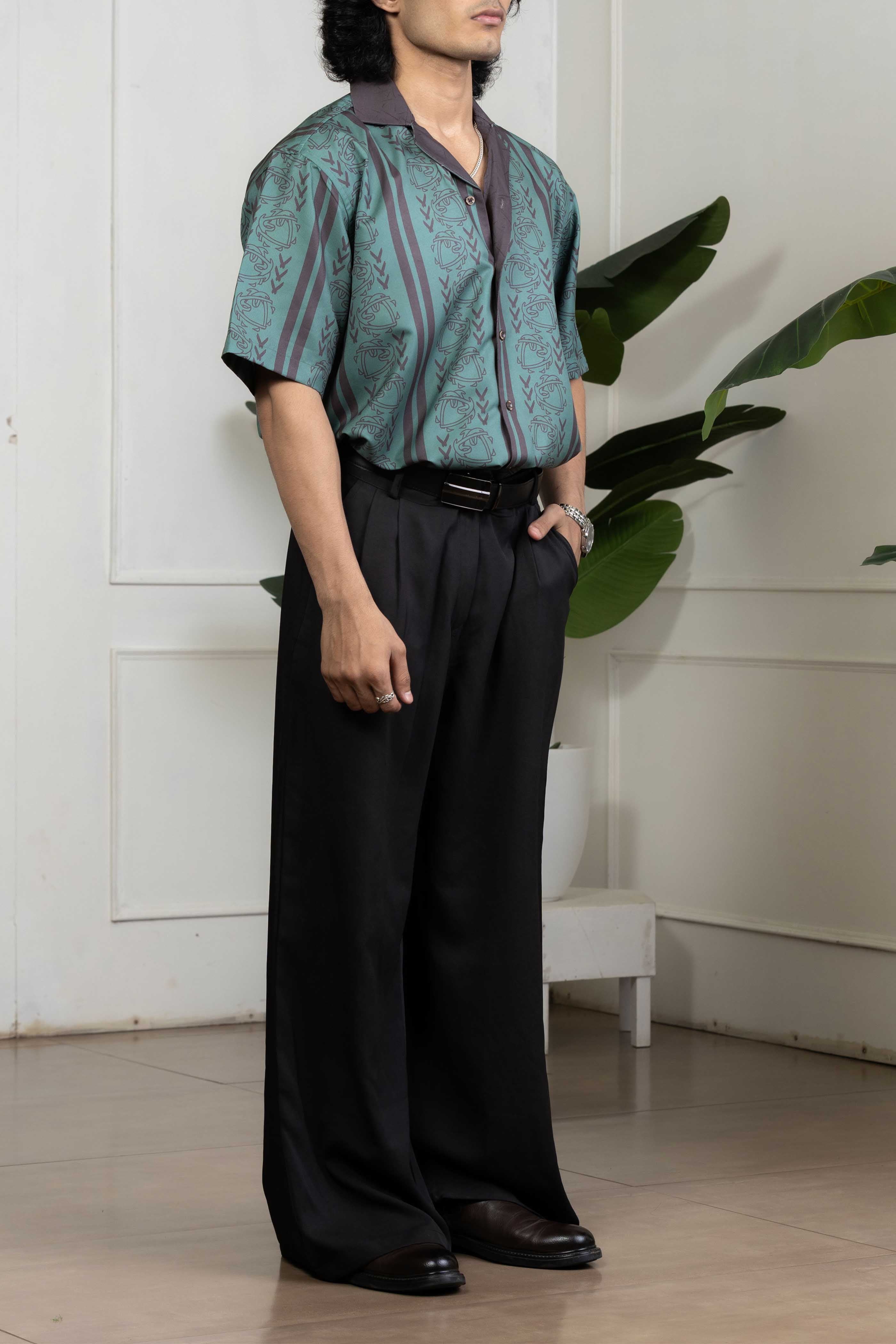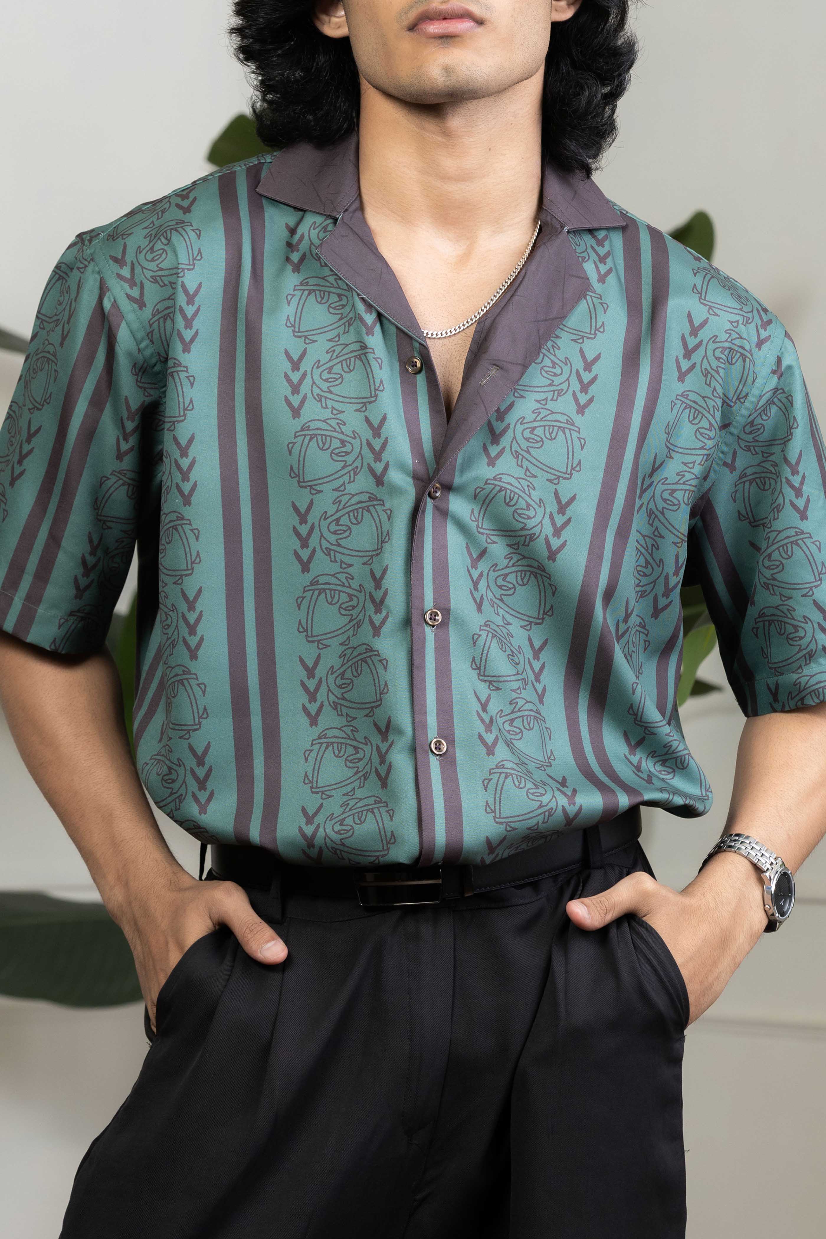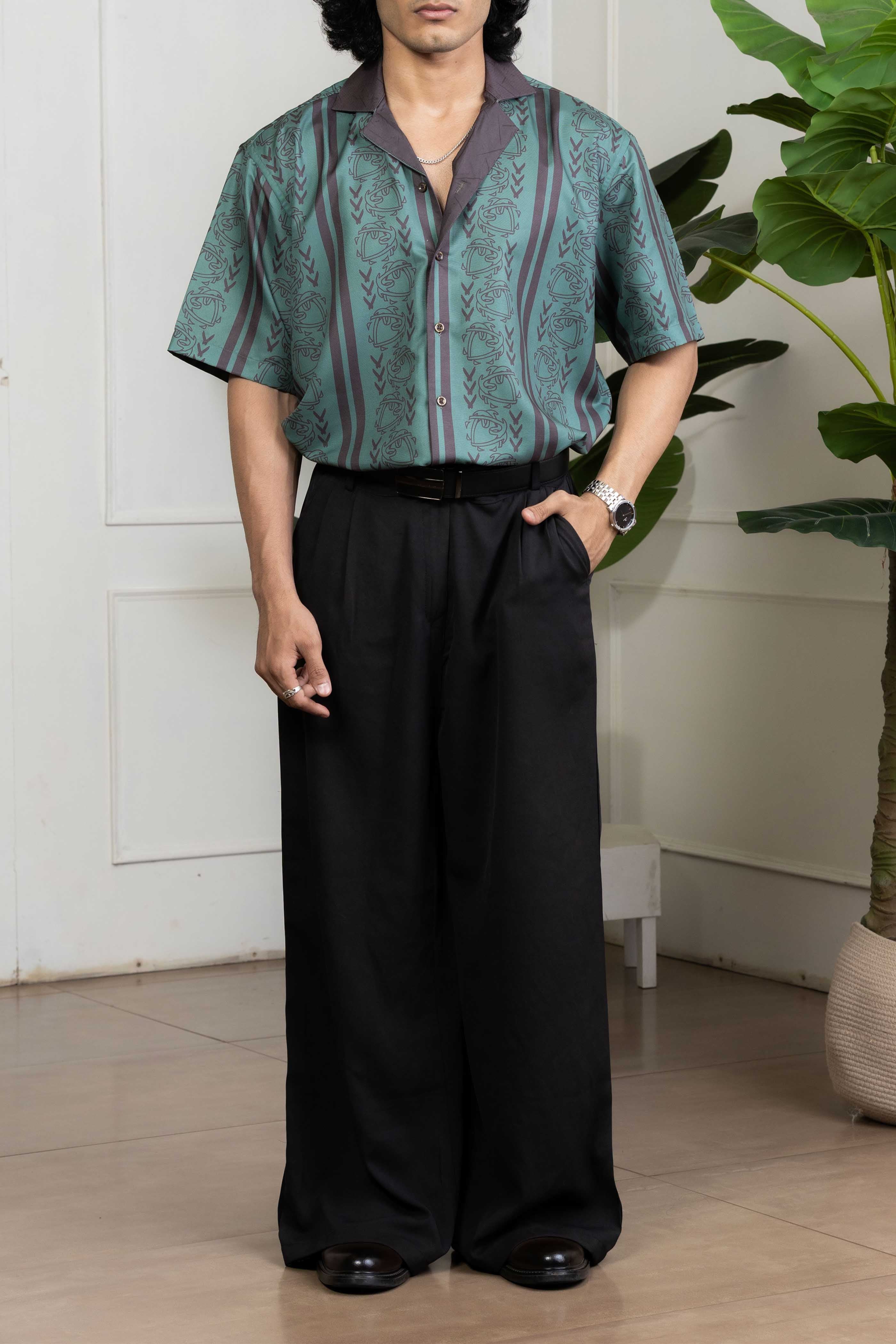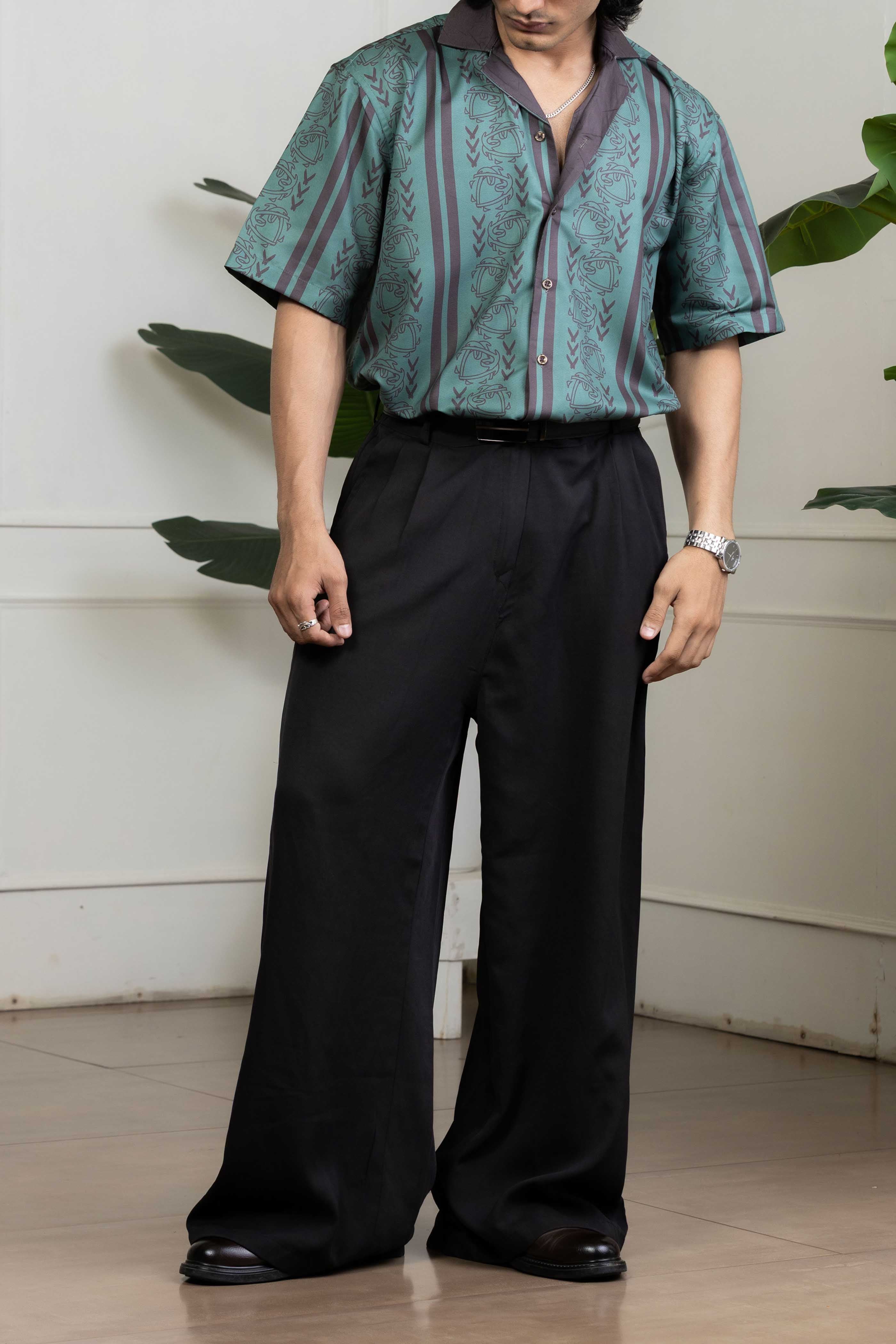 Made from ultra-soft viscose, the “Celestial Descent” shirt is where structure meets flow. Hand-drawn motifs shower down in divine rhythm, framed by precise, symmetrical borders — a harmony between abstraction and geometry. The fabric breathes with ease, light against the skin, offering all-day comfort while carrying a quiet, magnetic presence. Stunning yet understated — this shirt isn’t loud, but it speaks volumes.