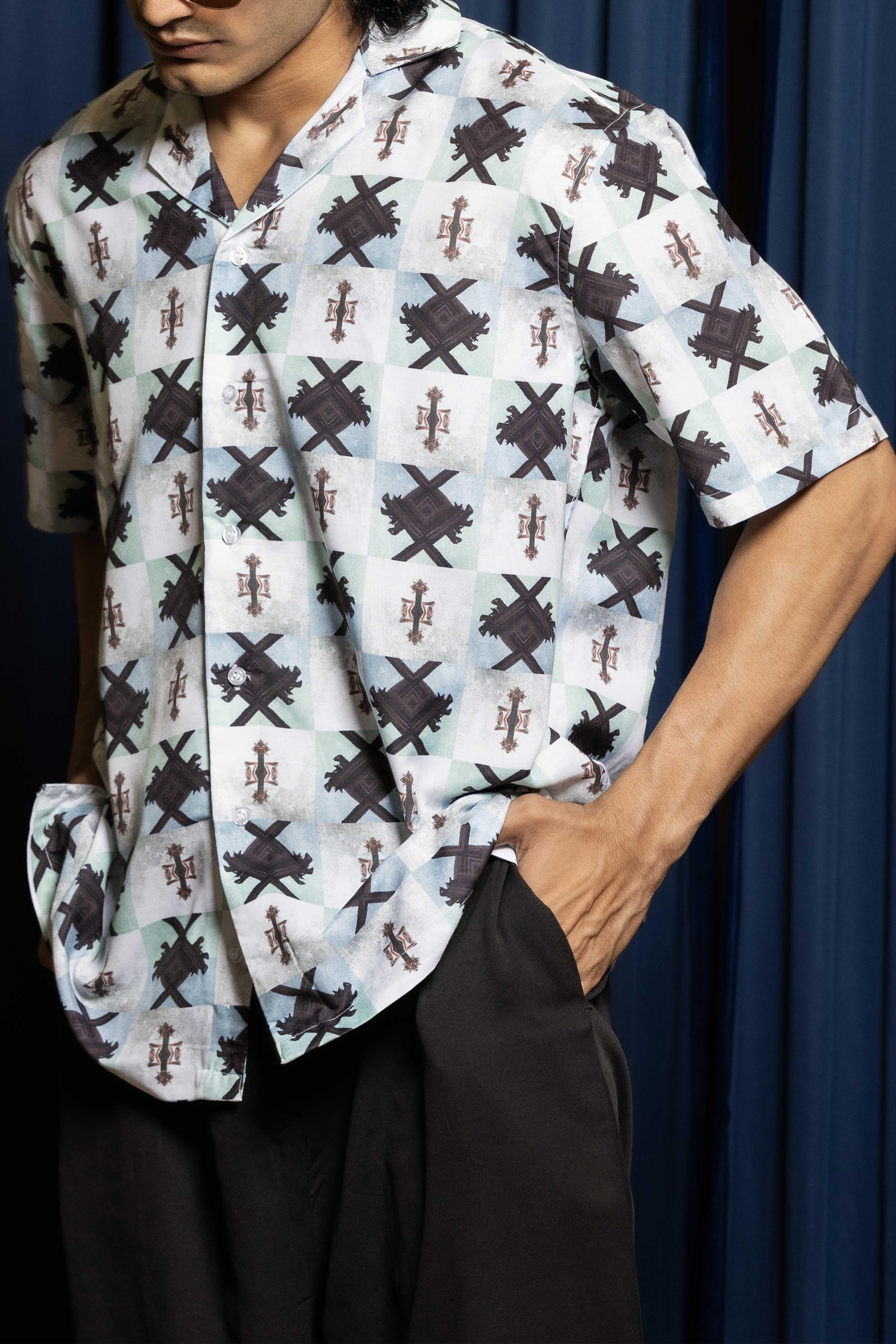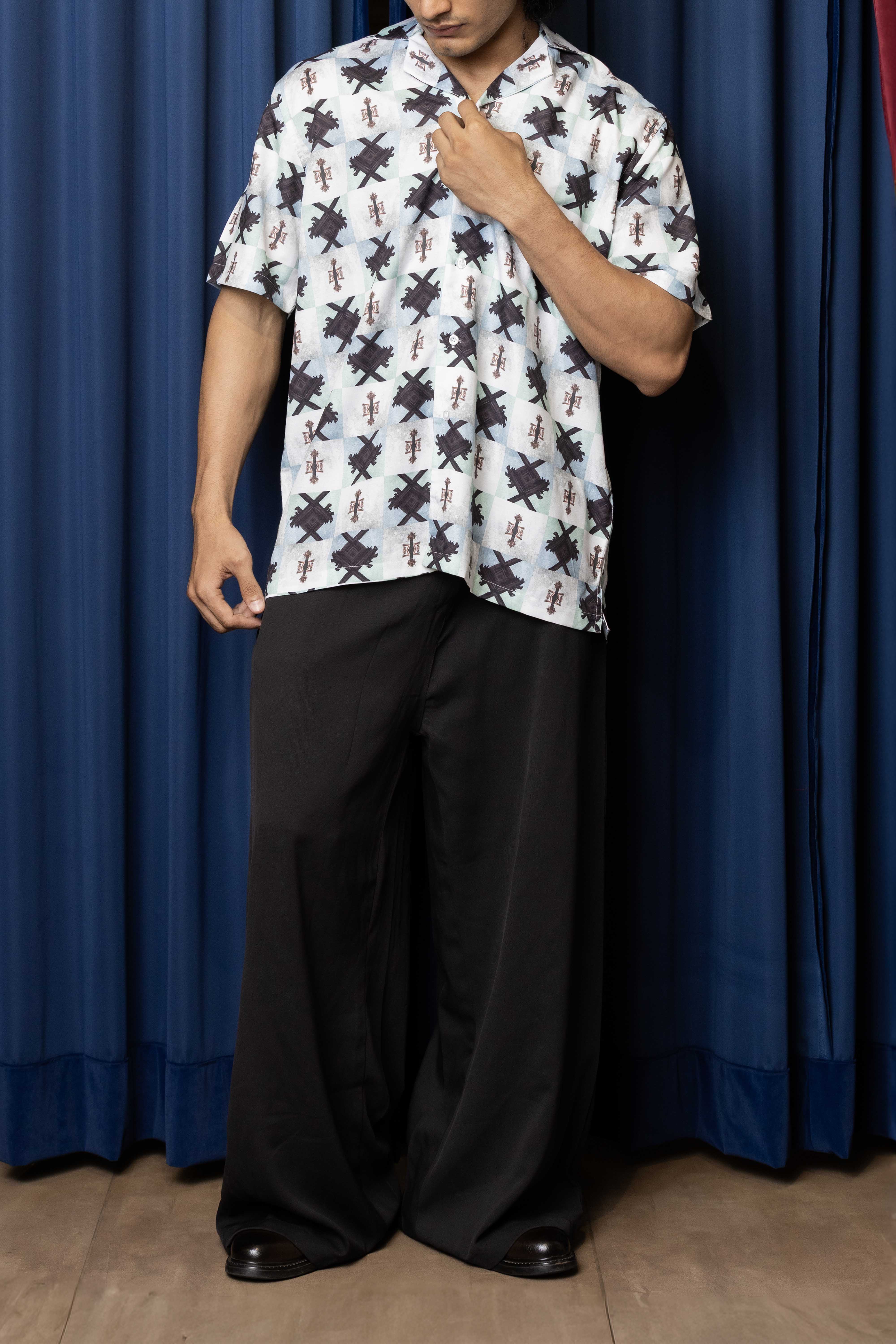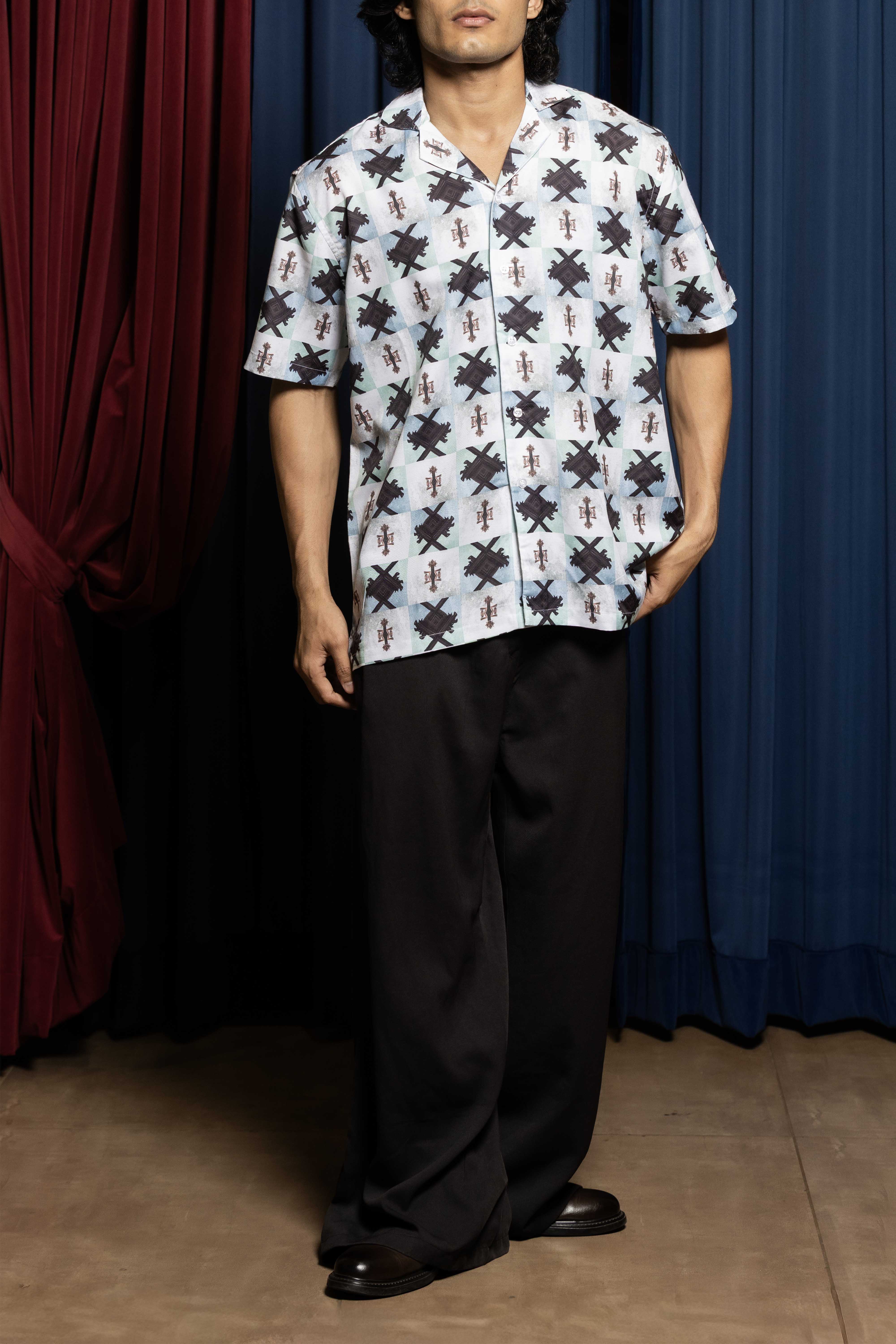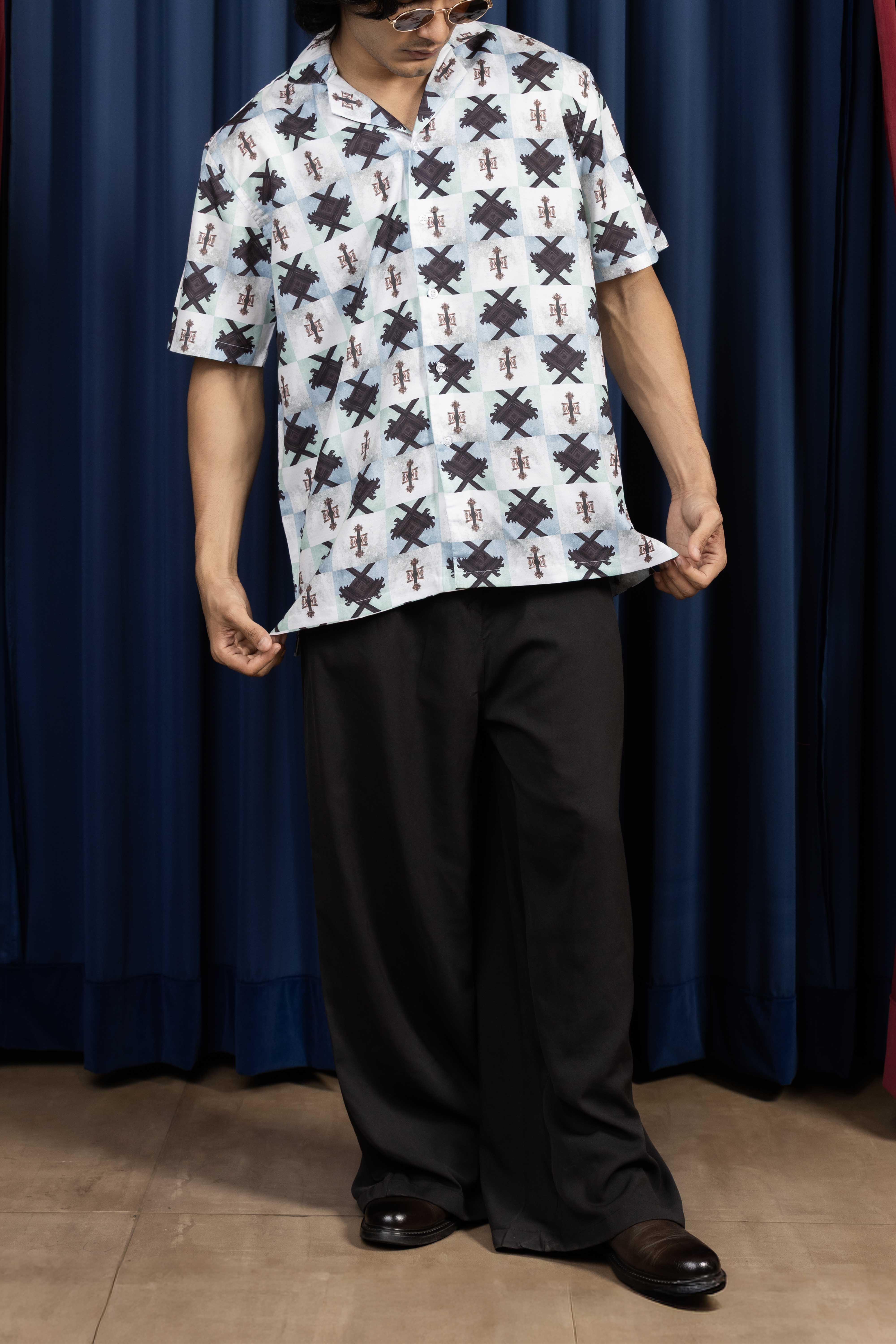 Cut in a mildly textured viscose blend, the Dynarche Cuban Collared Shirt carries a fluid drape and breathable ease, balancing refinement with comfort. The Cuban collar frames the neckline with quiet sharpness, while the fabric lends the shirt a natural, understated depth.