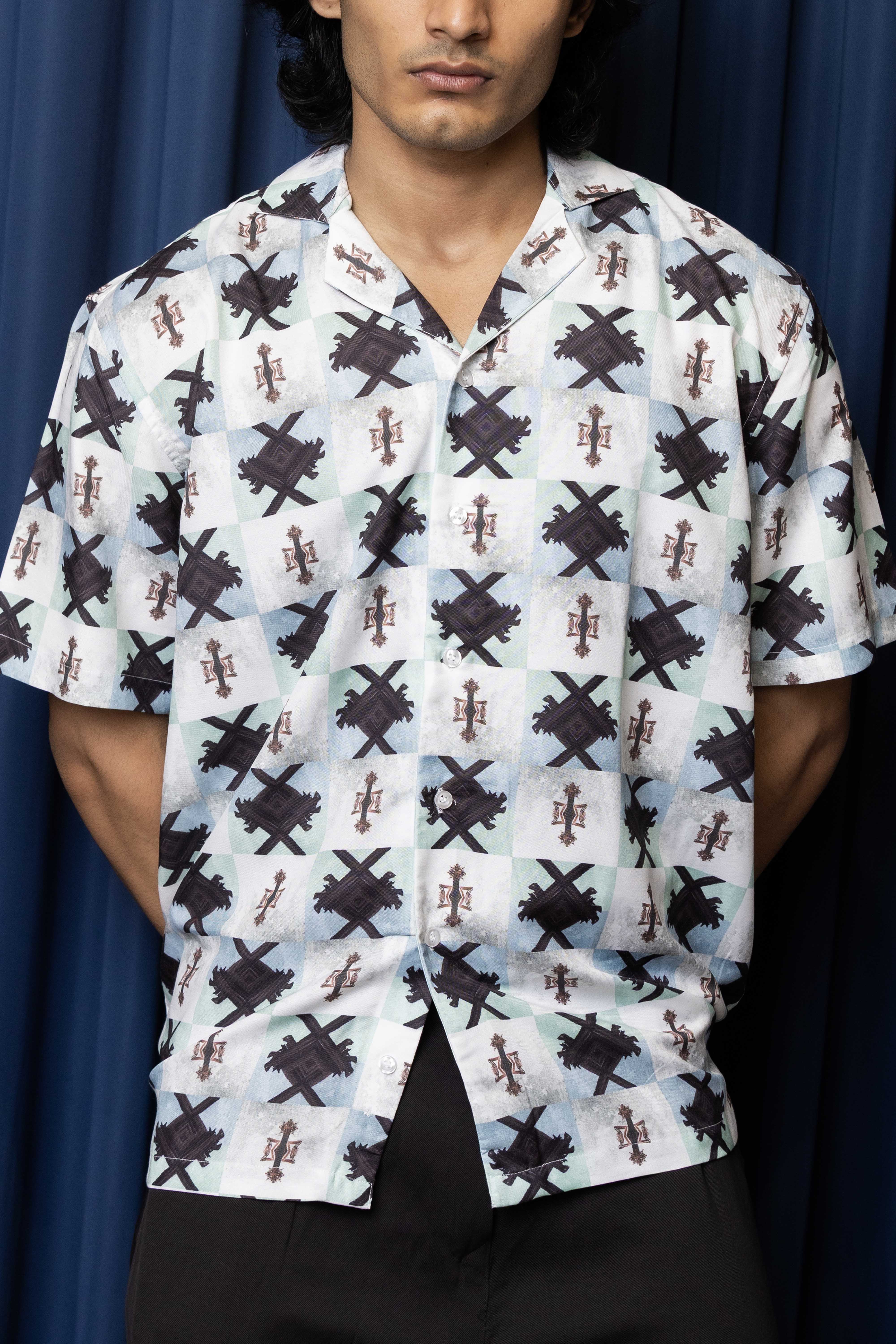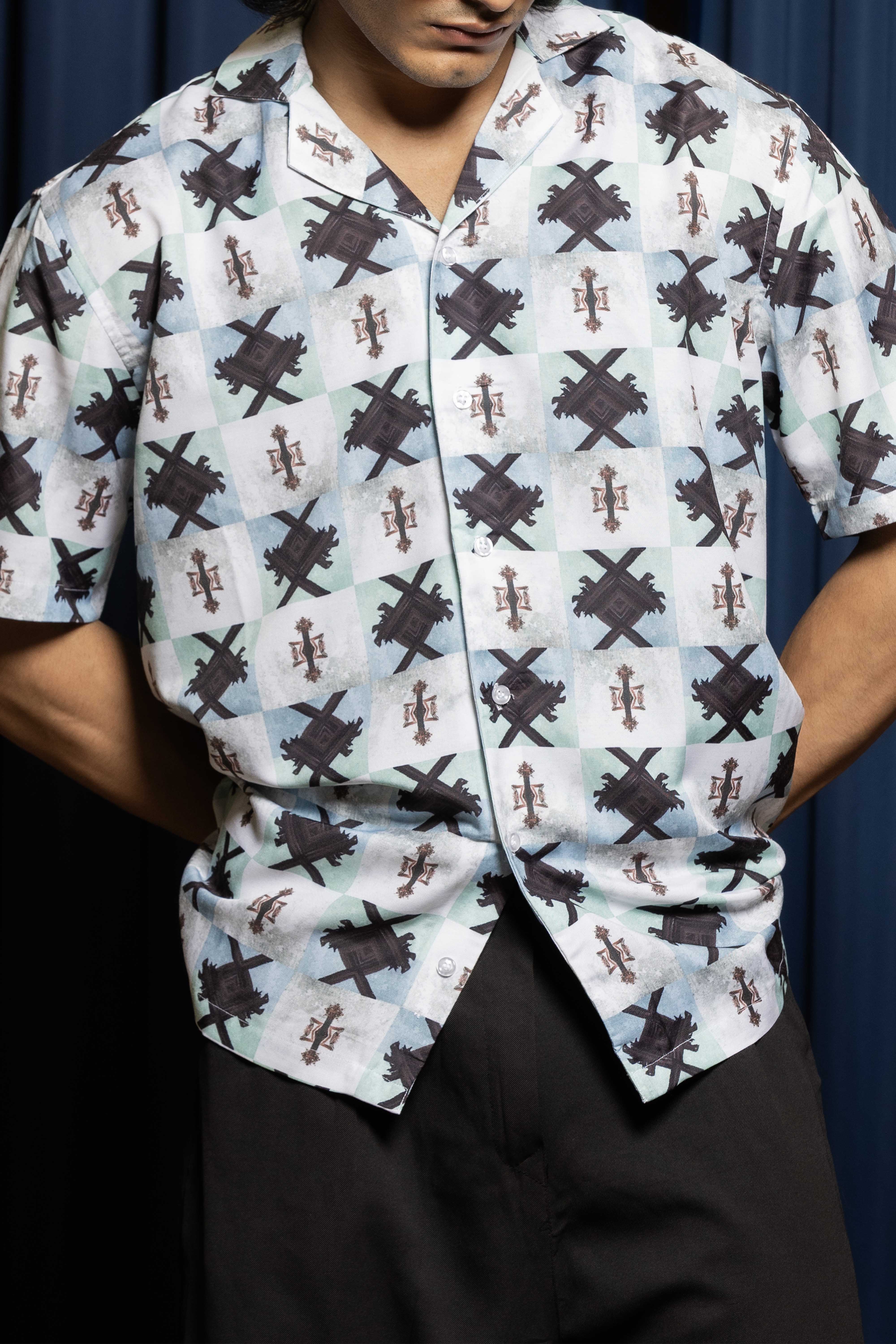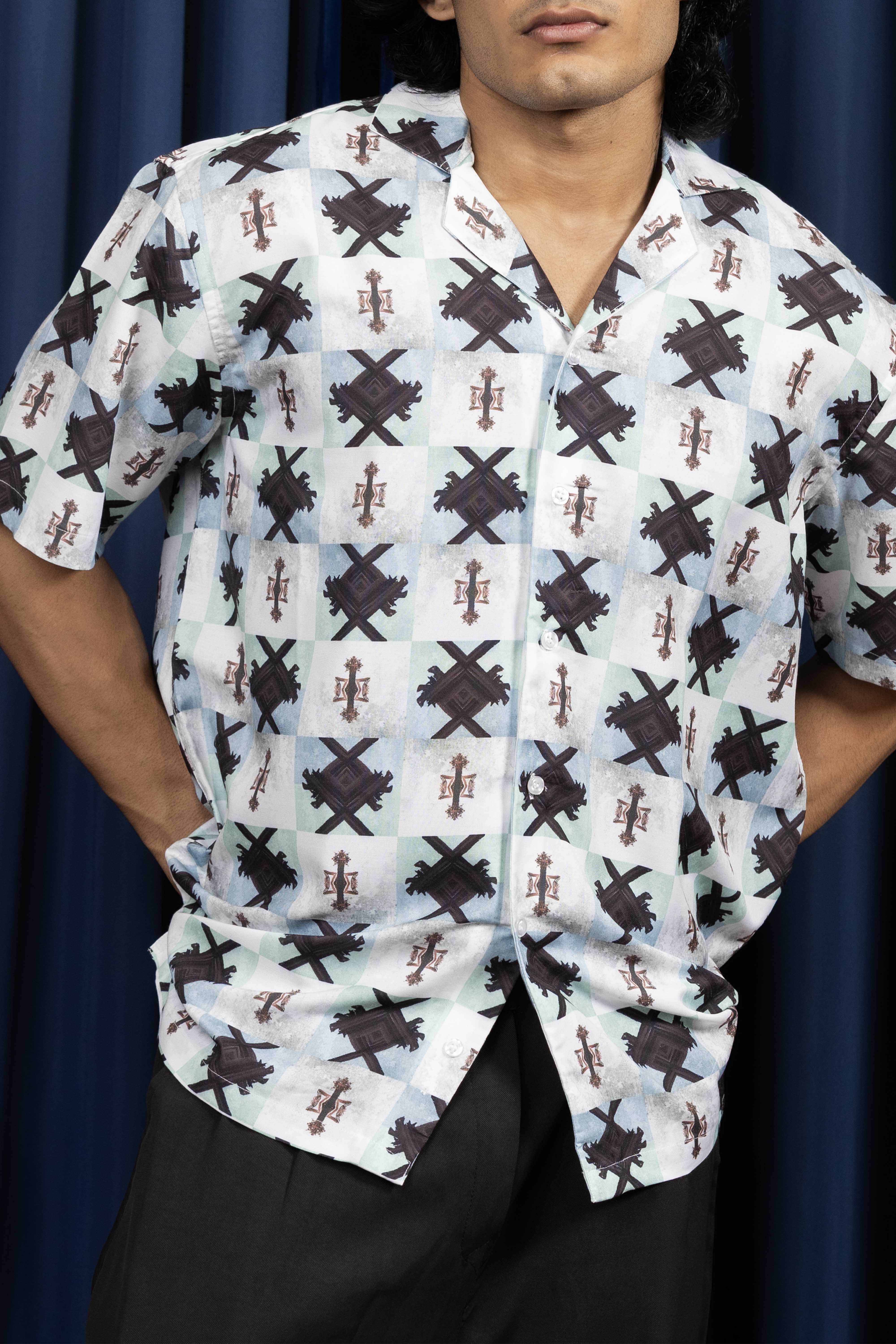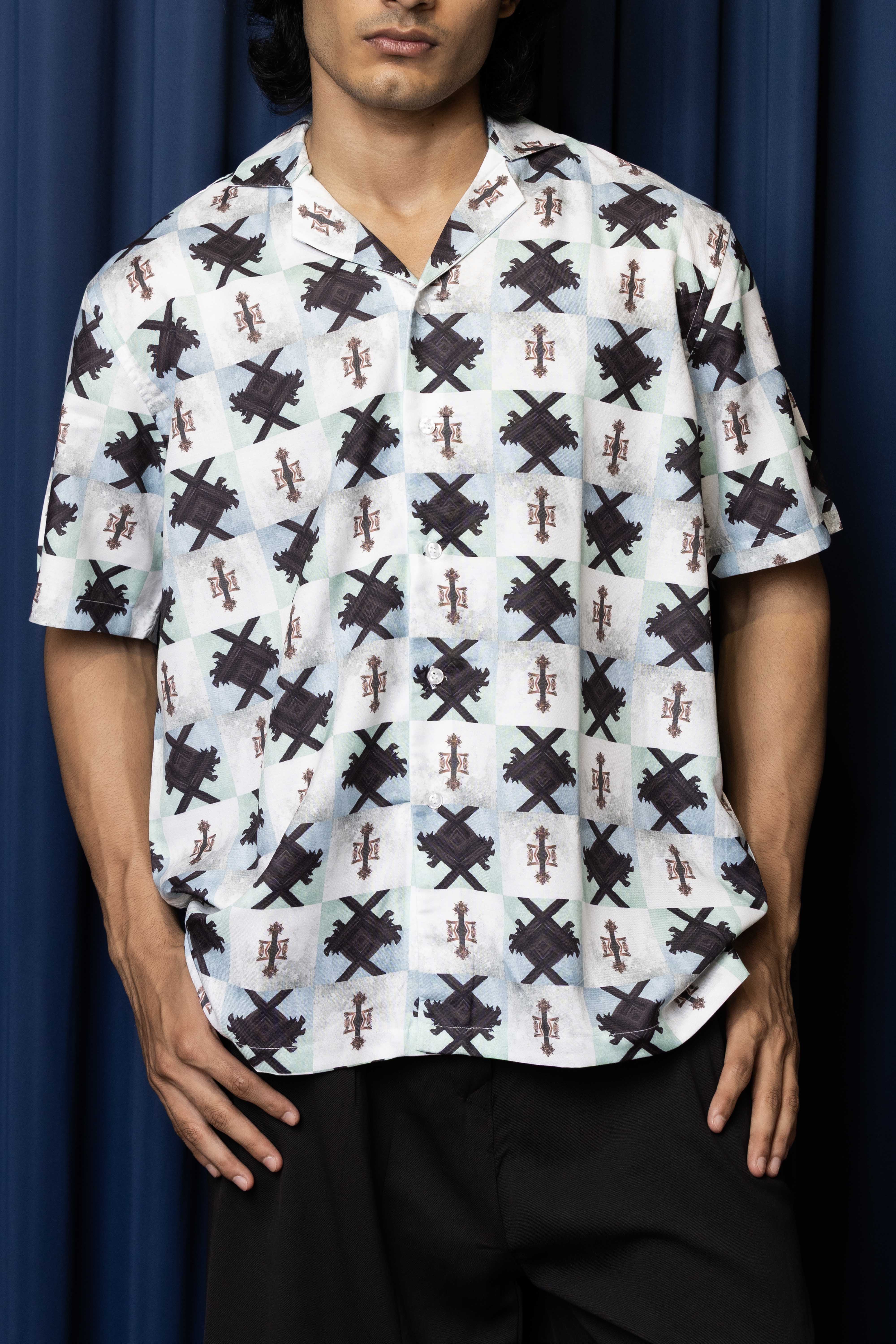 Cut in a mildly textured viscose blend, the Dynarche Cuban Collared Shirt carries a fluid drape and breathable ease, balancing refinement with comfort. The Cuban collar frames the neckline with quiet sharpness, while the fabric lends the shirt a natural, understated depth.