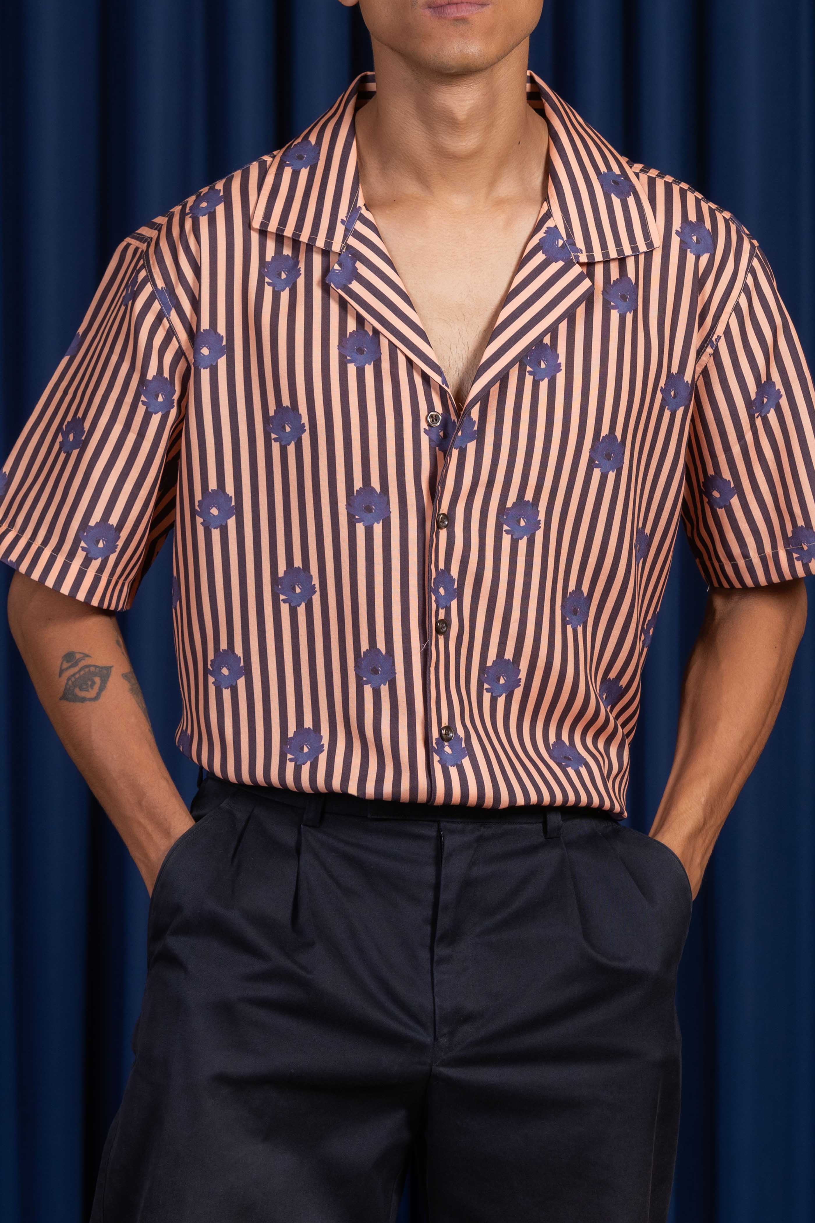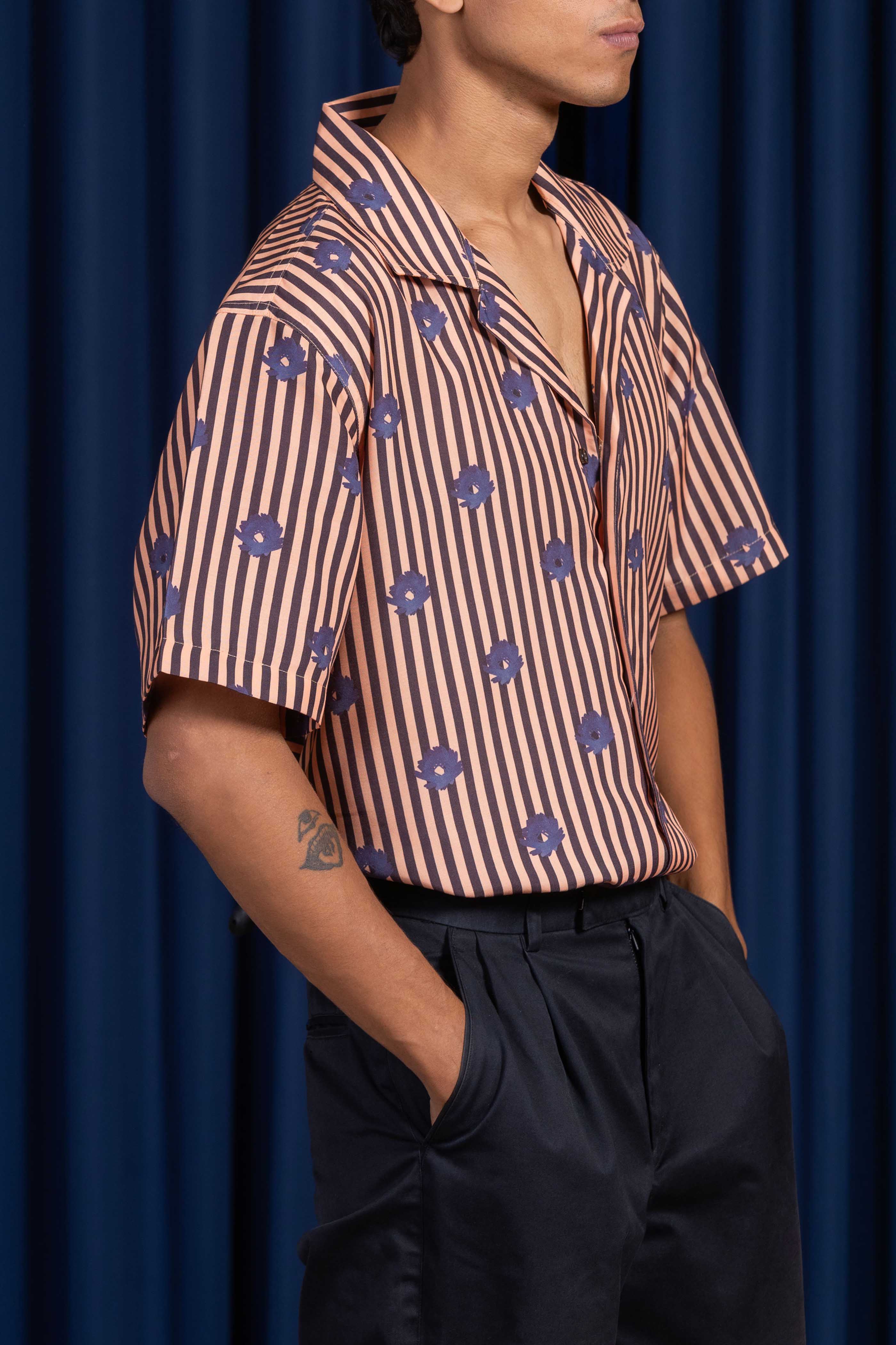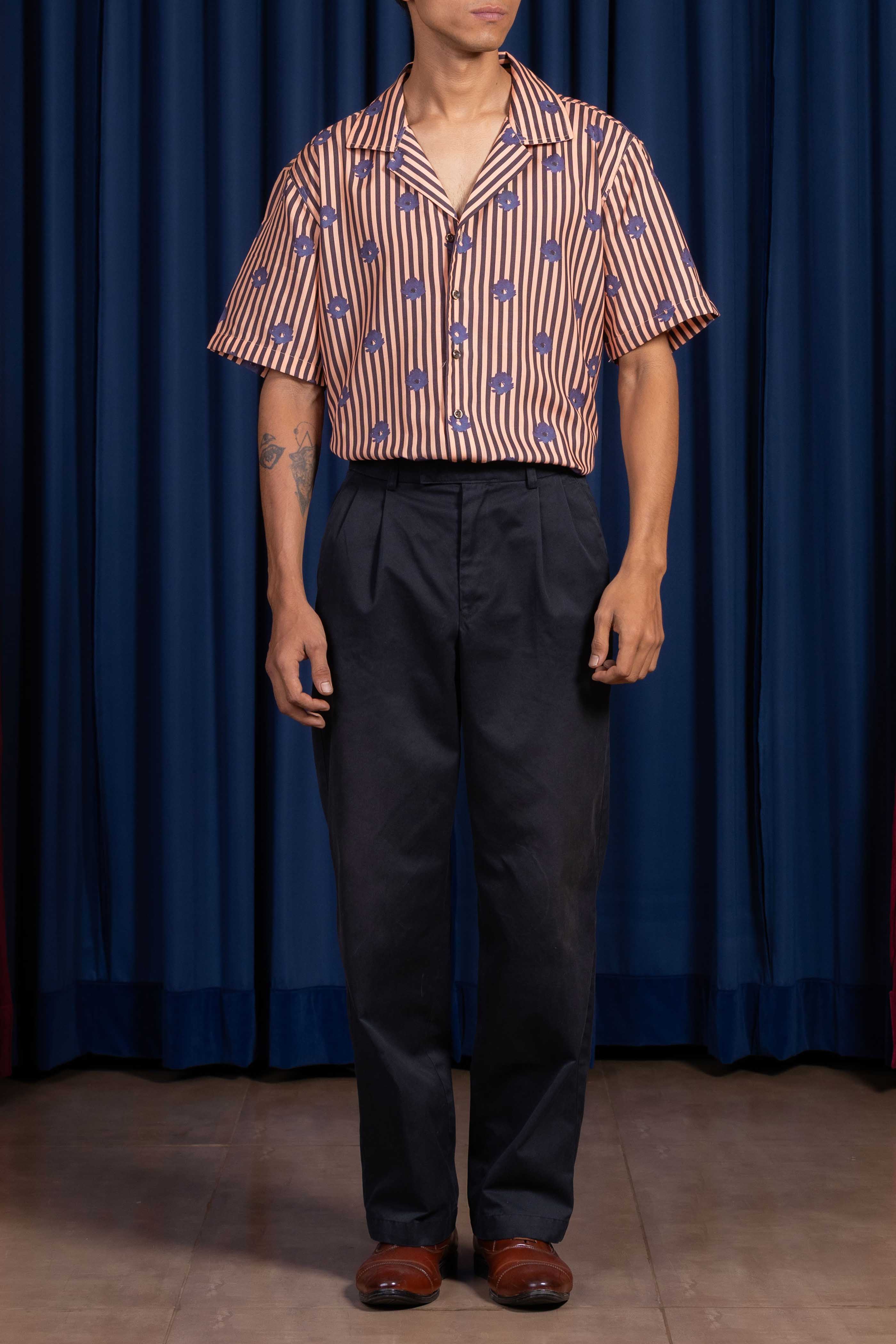 Cut in a mildly textured viscose blend, the Opal Reign Cuban Collared Shirt carries a fluid drape and breathable ease. The Cuban collar shapes the neckline with effortless sharpness, while the fabric’s quiet texture lends presence without weight.