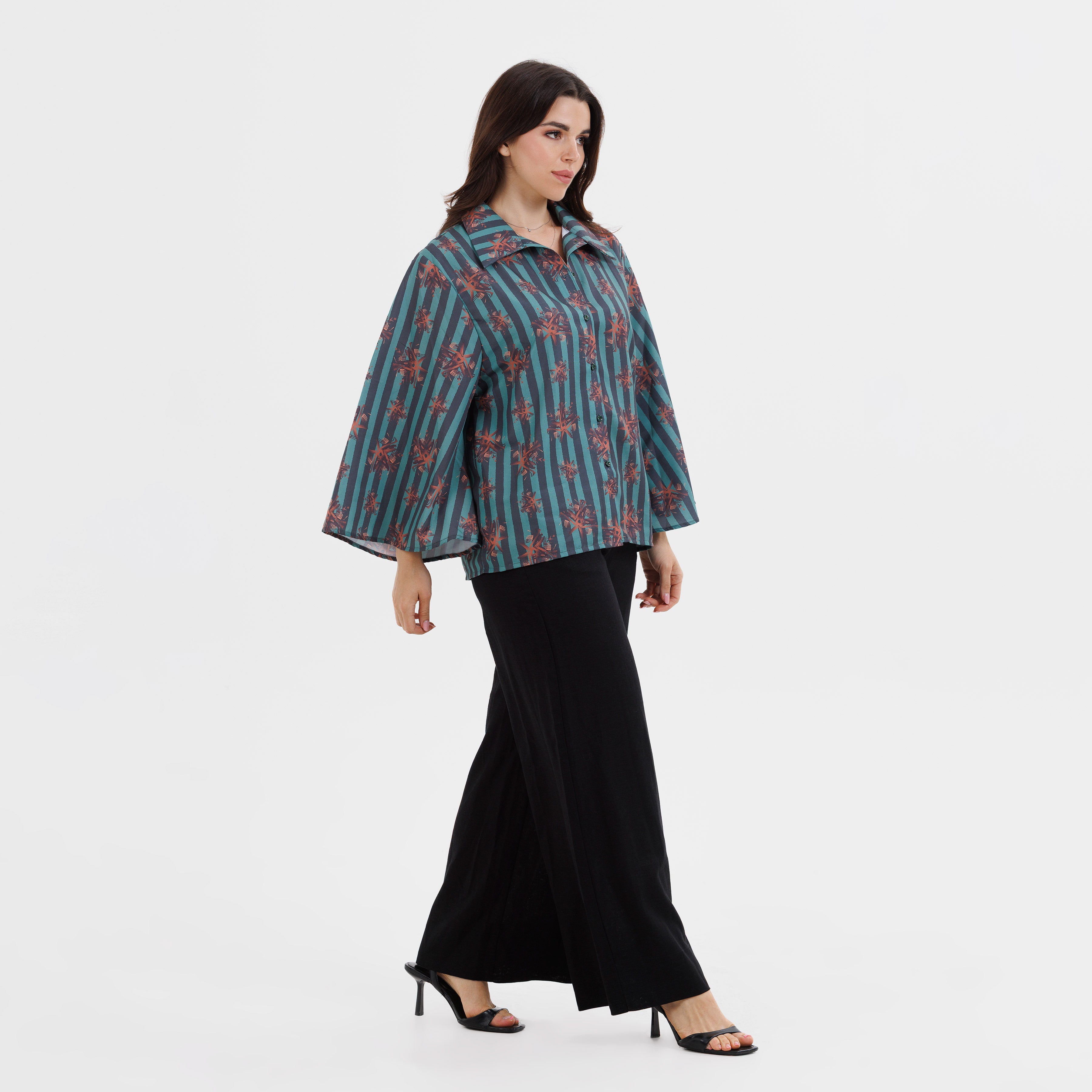 A study in effortless grace. Cut in a fluid cotton–viscose blend, the Lutheinn shirt carries sleeves that grow outward from the armhole, creating a silhouette both elegant and unrestrained.