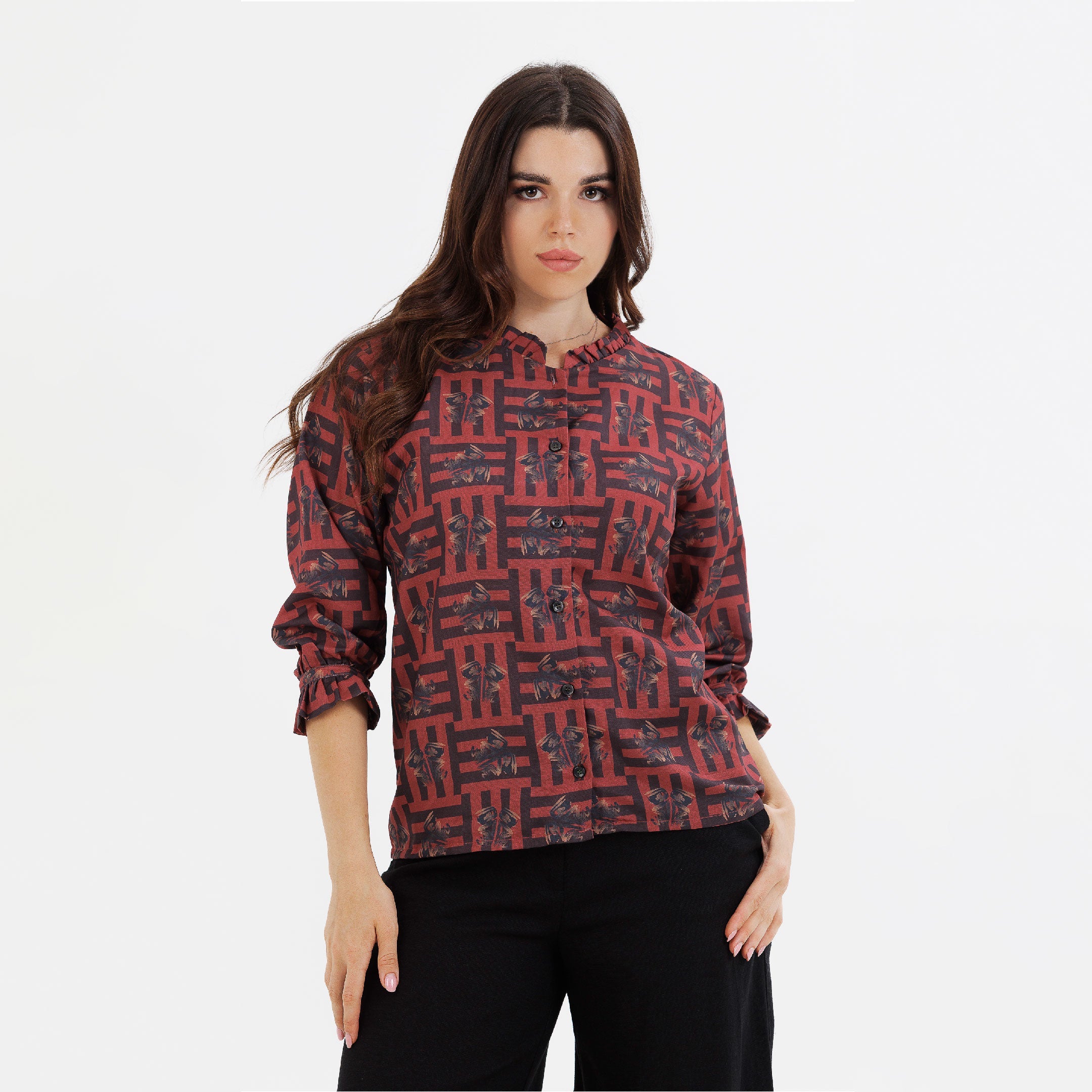 A classic form, reimagined with detail. The Mireaux-2 shirt is tailored in a cotton–viscose blend, framed by a frilled collar and long sleeves that finish in softly gathered cuffs.