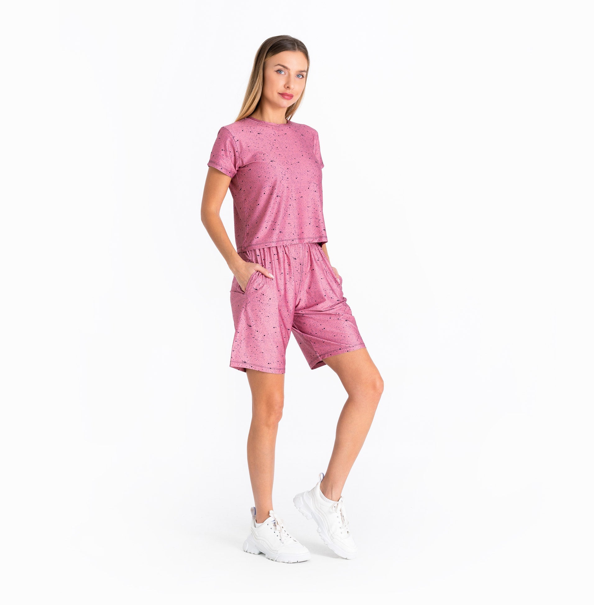 Designed with an intricately detailed splashed texture in a vibrant color, "Dots" are your ideal gym wear shorts. Made from soft, breathable, and durable fabric, these women's activewear shorts are specially designed for running, trekking, strength training, and other light or intense sports activities. The "Dots" shorts combine style and functionality with an elastic waistband for ultimate comfort and convenient pockets, making them feel as good as they look.
