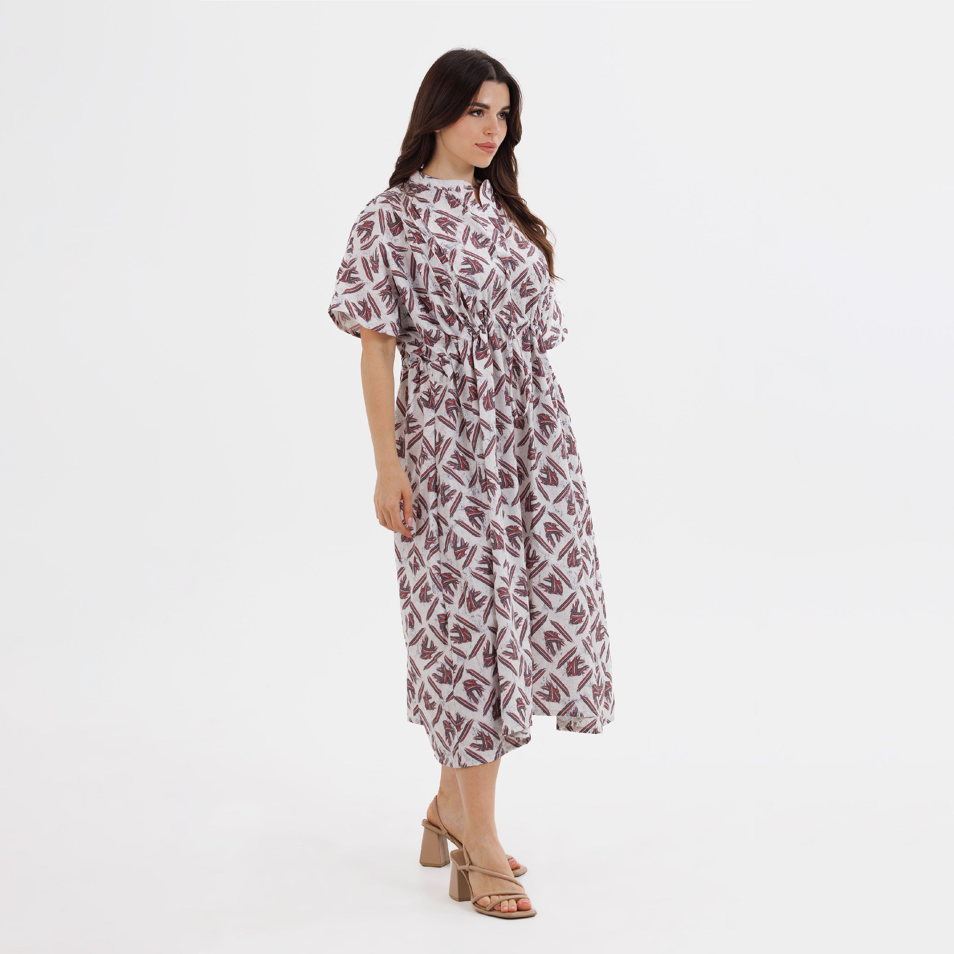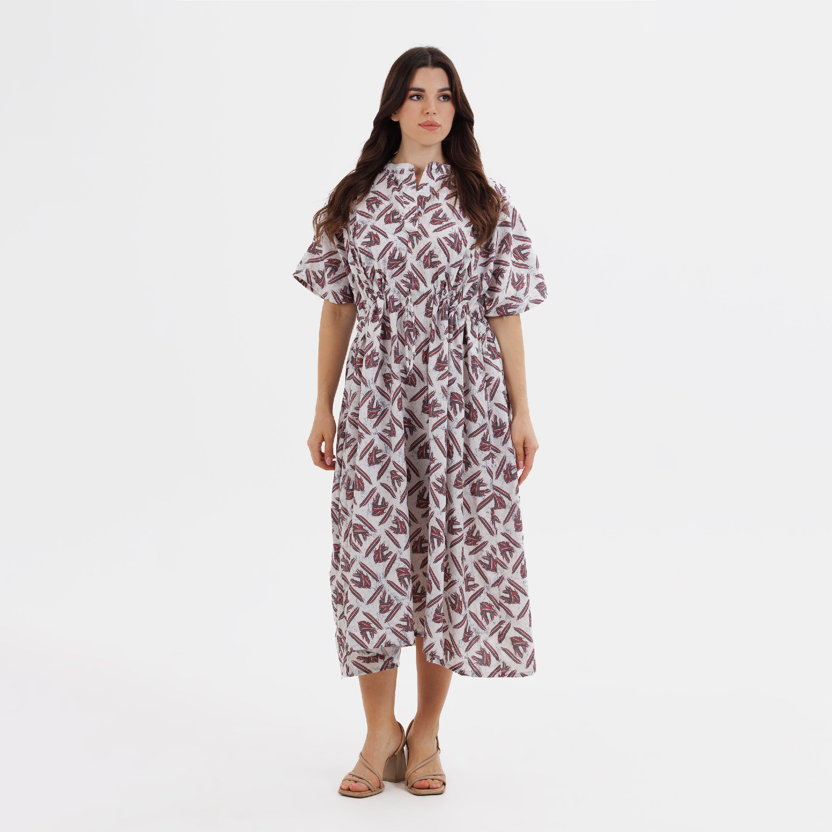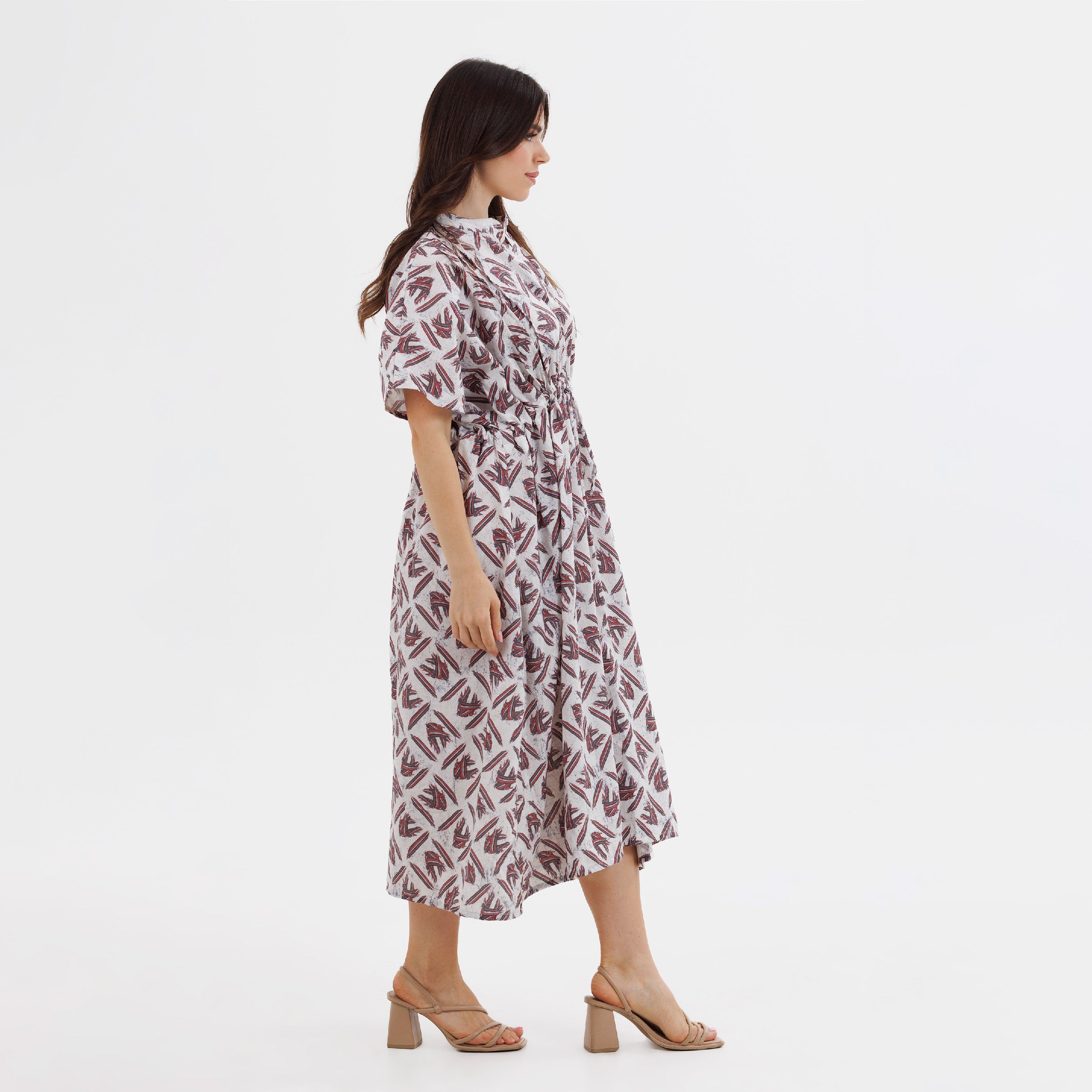 A statement in quiet strength. The Mythikaya dress is crafted in a breathable cotton-linen blend, falling gracefully to calf length. The concealed elastic waistband, finished with an adjustable drawstring, creates shape while preserving ease.