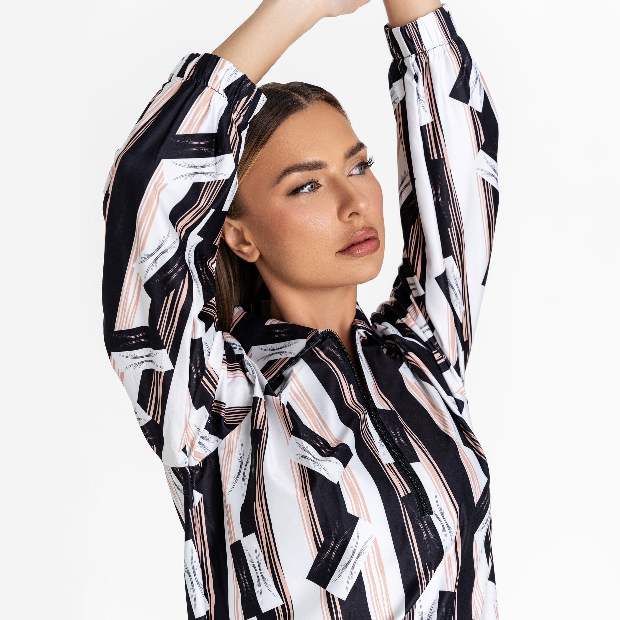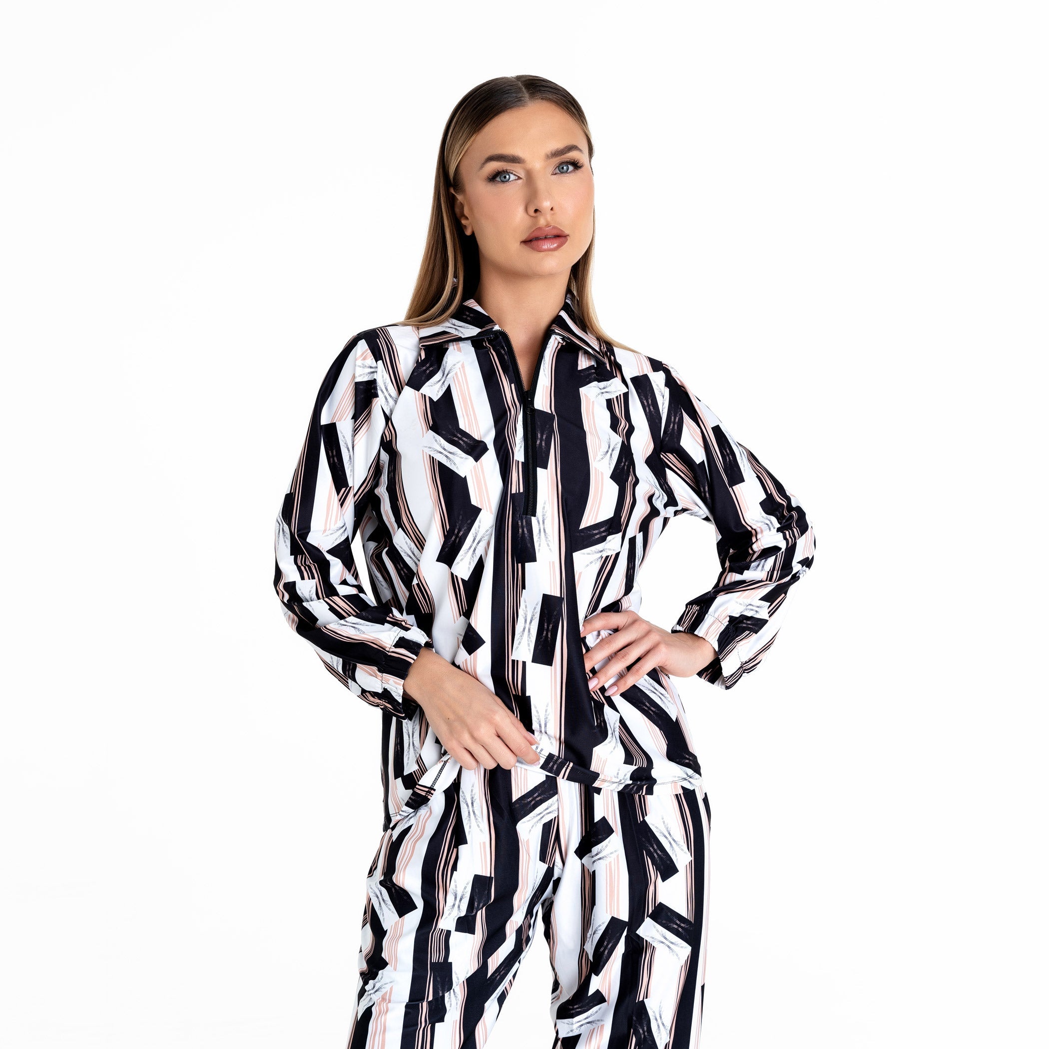 The “A Thousand Push-Ups” t-shirt embodies the strength, tenacity, and focus needed to push through every challenge. This activewear top blends bold design with comfort, making it as powerful as it is wearable. Featuring a collar with an easy zipper closure and elasticated sleeves for a relaxed yet stylish fit, this gym wear top for women stands out whether worn solo or as part of a coordinated set—bringing versatility to your style.
