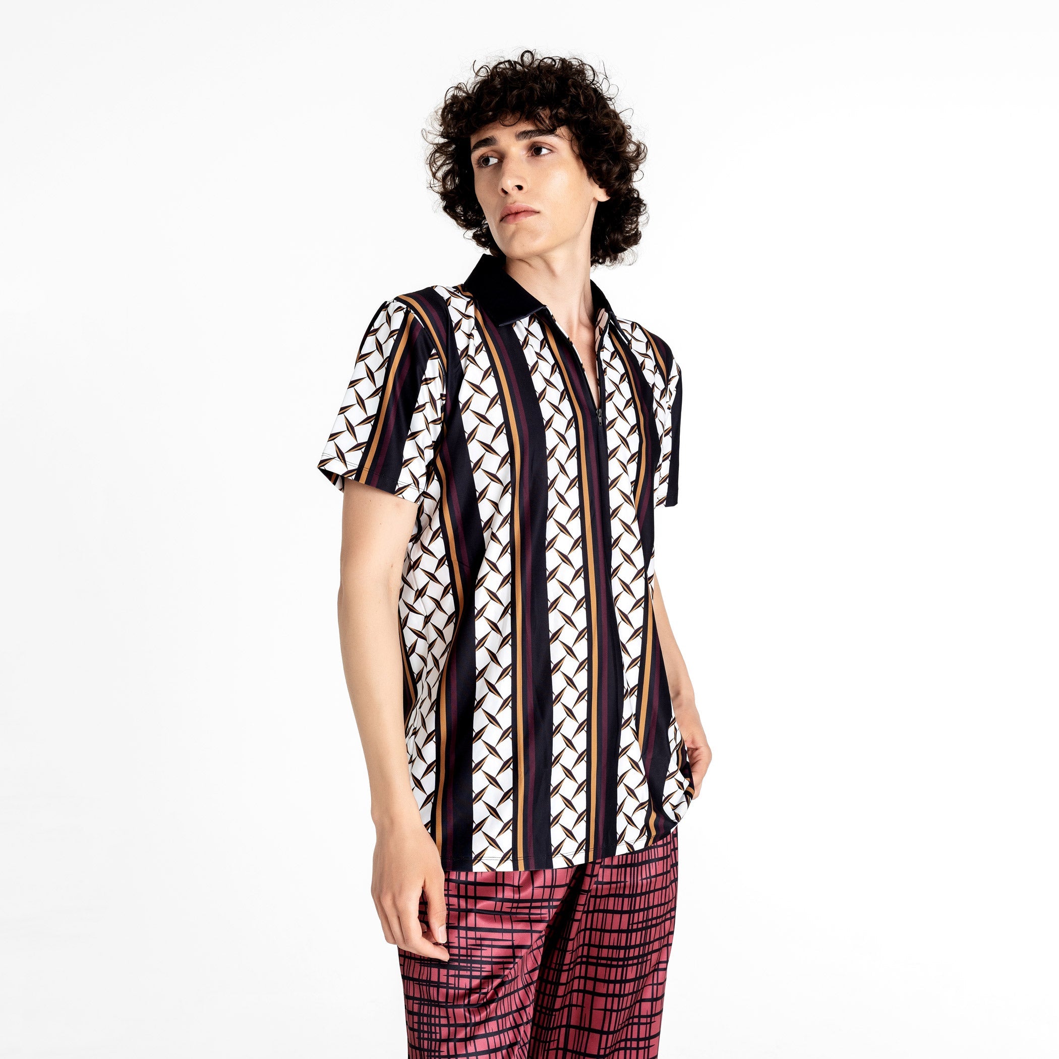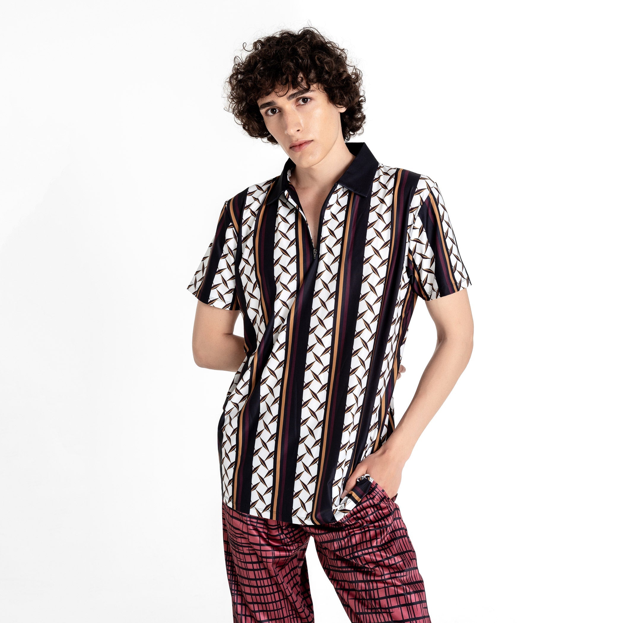 The "By Invitation Only" polo radiates exclusivity, confidence, and sophistication. Featuring a sleek geometric print that celebrates symmetry, this polo t-shirt is designed with a contrasting collar and a stylish zipper closure, blending modern flair with timeless appeal. The technical fabric with its breathability, durability, and stretch makes it the ideal football polo t-shirt that is high on style and performance. Whether you're on the football field or traveling, this versatile workout t-shirt effortlessly combines style and functionality for any occasion.
