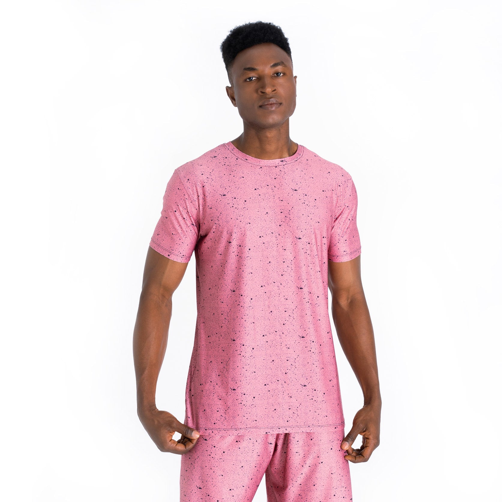 Designed with an intensely splashed texture, the "Dots" activewear t-shirt adds both style and functionality to your sportswear wardrobe. This round-neck, short-sleeved t-shirt offers a relaxed fit for ultimate comfort during any activity. Made with moisture-wicking and quick-drying fabric, this piece ensures you stay dry and comfortable, making it one of the best men’s sportswear t-shirts you’ll ever wear. Beyond sports, its versatility makes it perfect for travel and leisure.